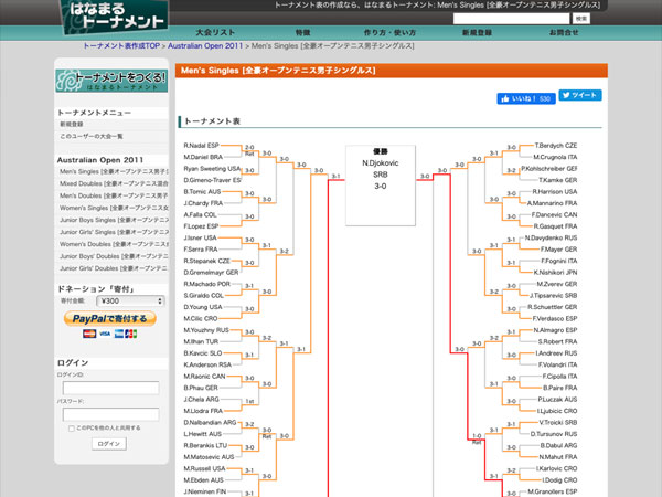 トーナメント表やリーグ対戦表を自由に作れるサービスです